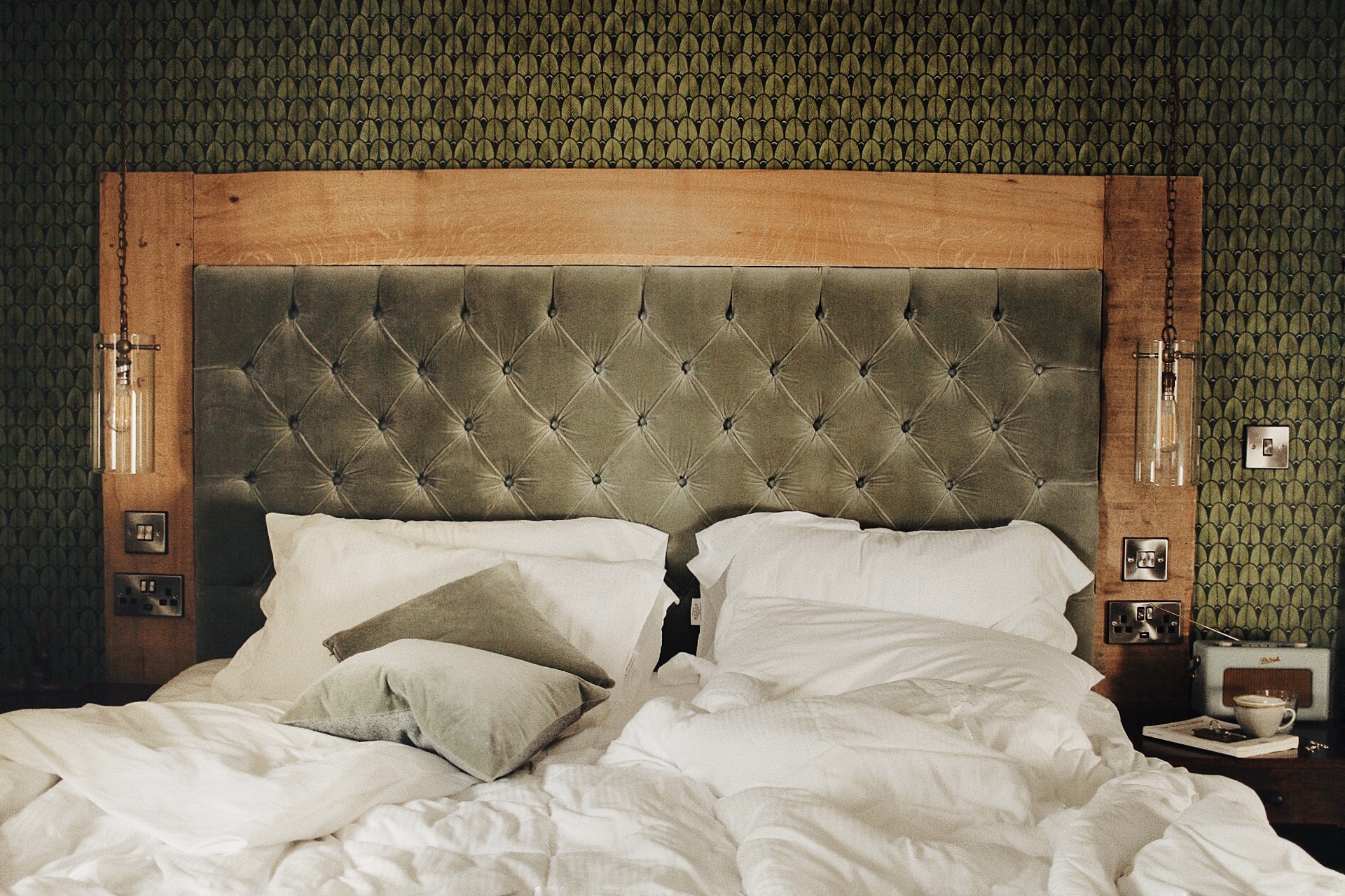 The room we stayed in was one of their luxury rooms and I can confirm it definitely felt luxurious, I especially loved the headboard, wallpaper & industrial bedside light combination– plus the room was ensuite with a beautiful roll top bath which I obviously made use of after dinner! We also had a beautiful view out of the lovely little window across the courtyard. I spent some time taking pictures inside and out of the hotel because every corner was really beautiful and our room was just made for taking cosy photos!